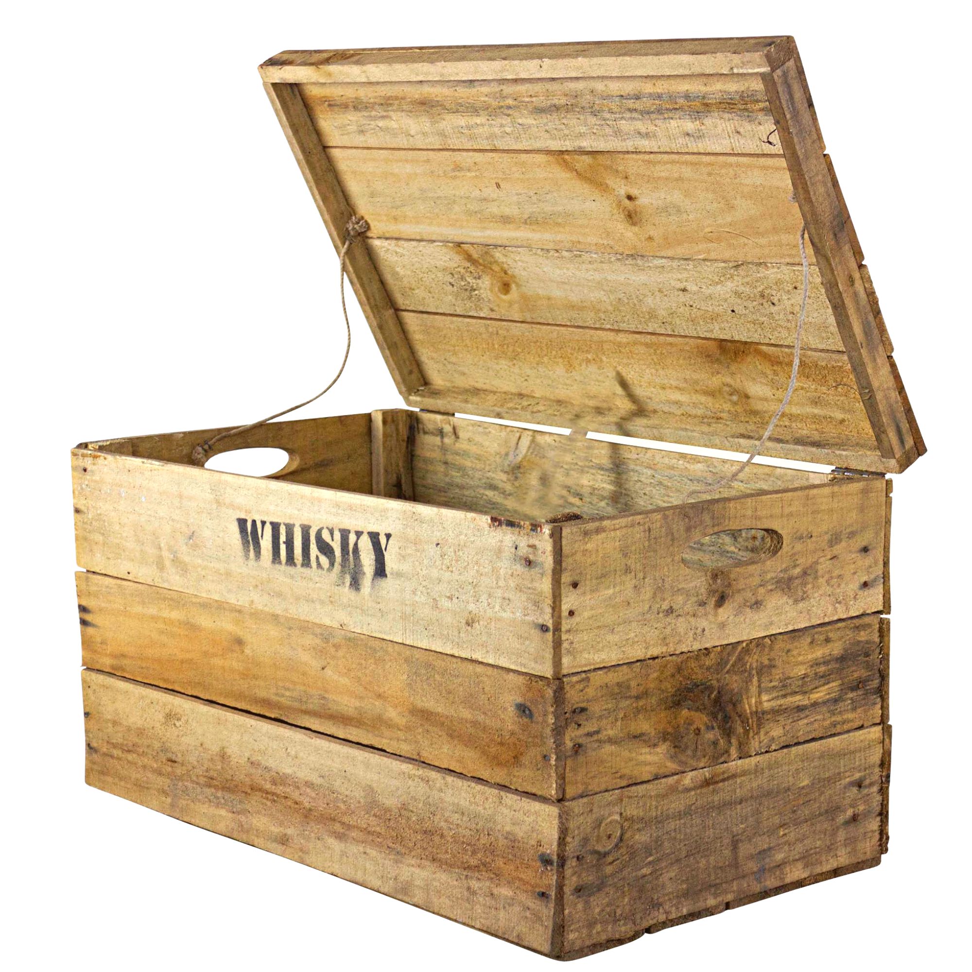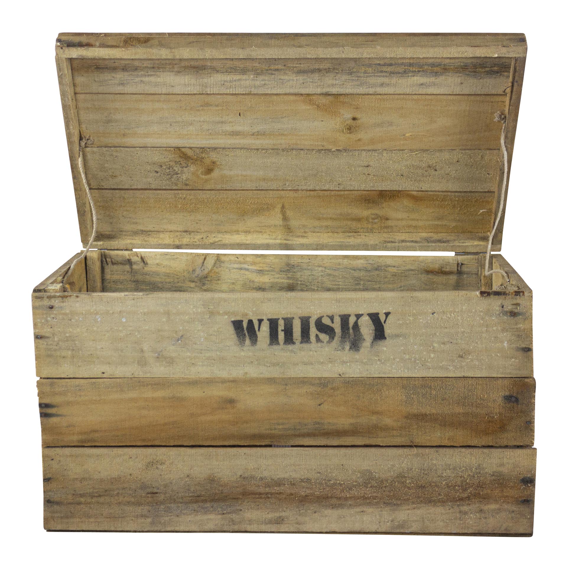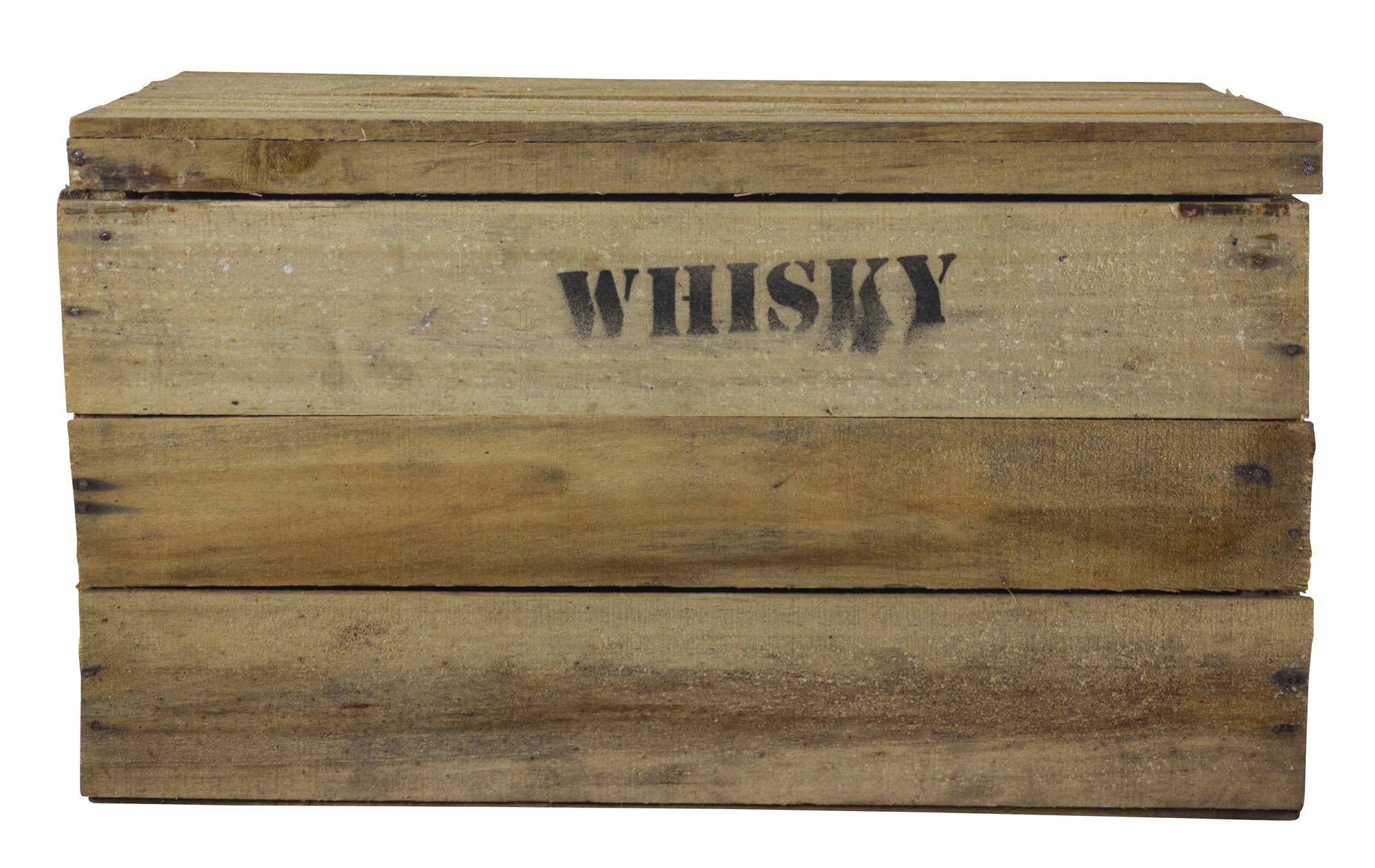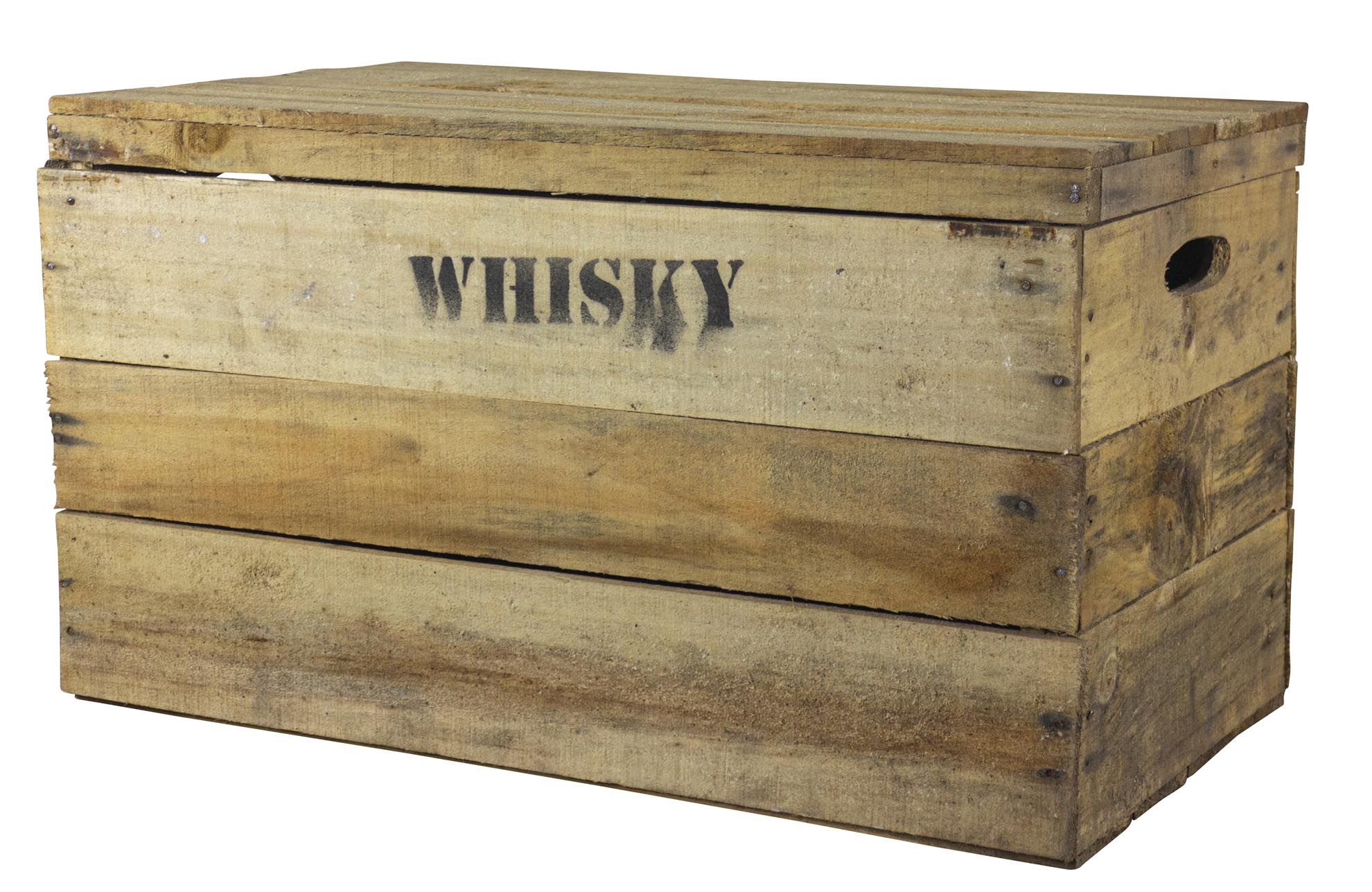 Rustikale Obstkiste mit Deckel und Aufdruck Whisky 58x34x32cm