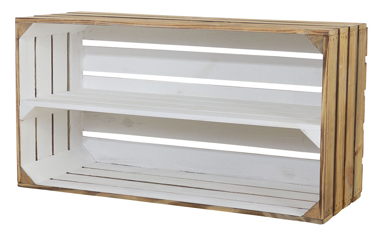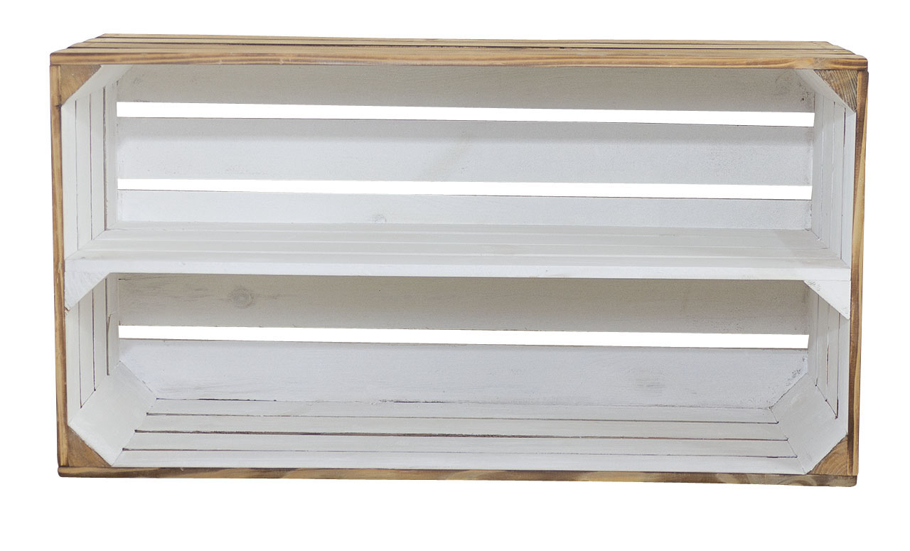 *SALE*: 2 Stk. Neue Holzkiste mit einem Mittelbrett | 68x40x31 cm | breite Allzweck Kiste für Schuhe, Natur Deko