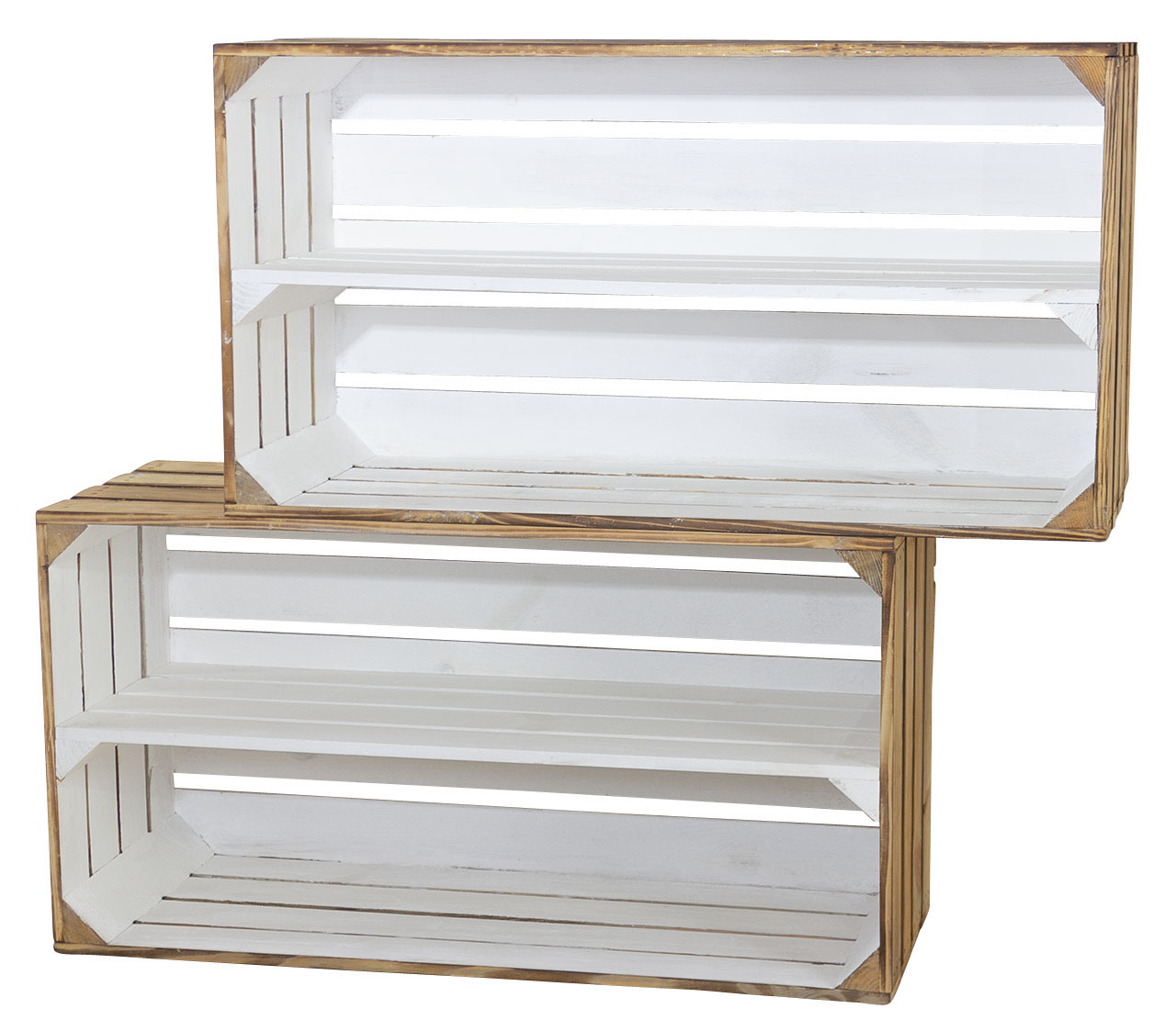 2 Stk. Neue Holzkiste mit einem Mittelbrett | 68x40x31 cm | breite Allzweck Kiste für Schuhe, Natur Deko