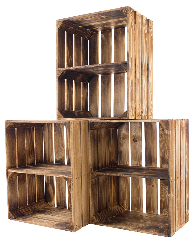 Unsere handgemachten Holzkisten und Obstkisten verleihen deinem Zuhause einen authentischen Stil! Nutzen Sie die Kisten als Regal, als Tisch oder als frei kombinierbares Regalsystem.