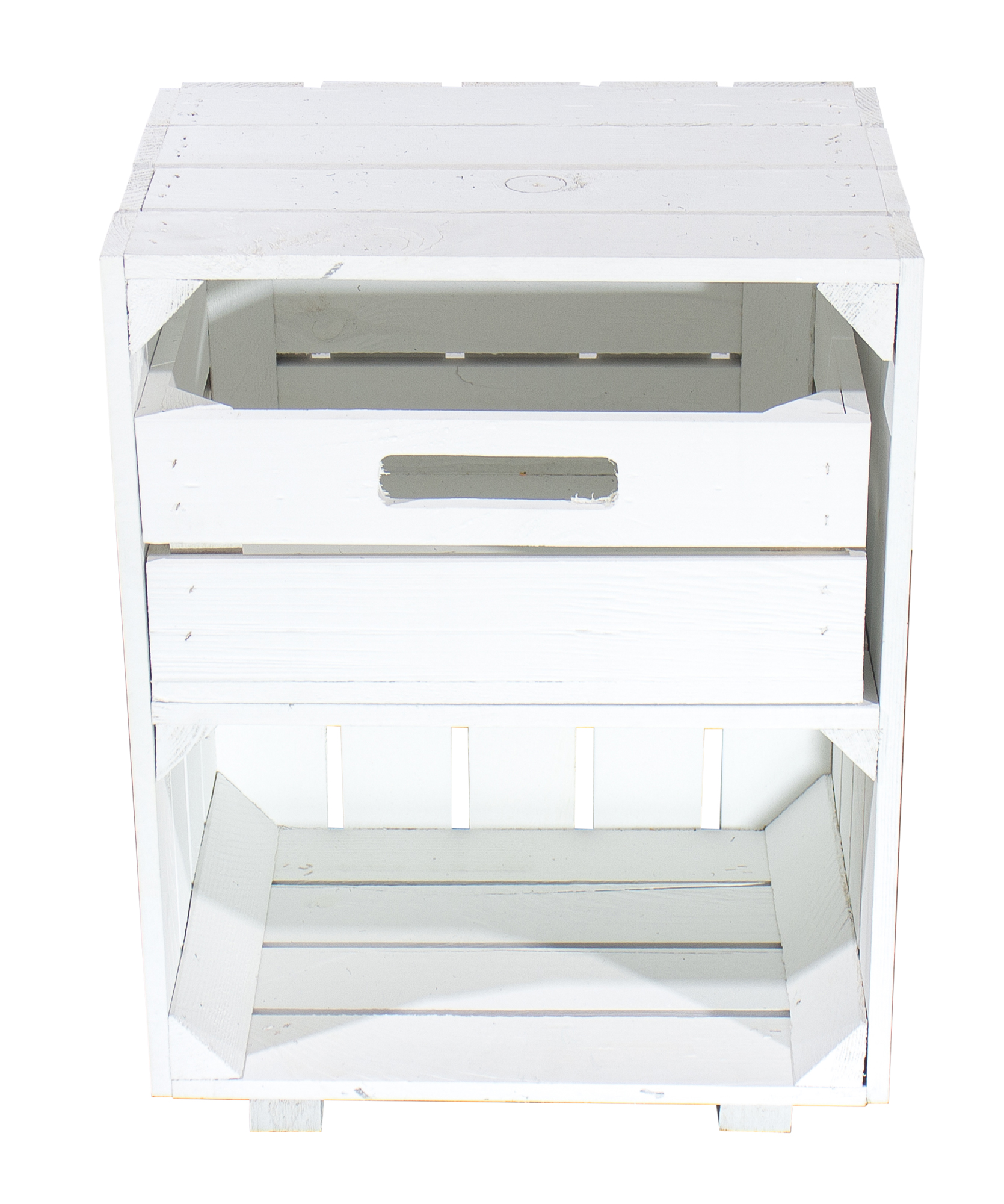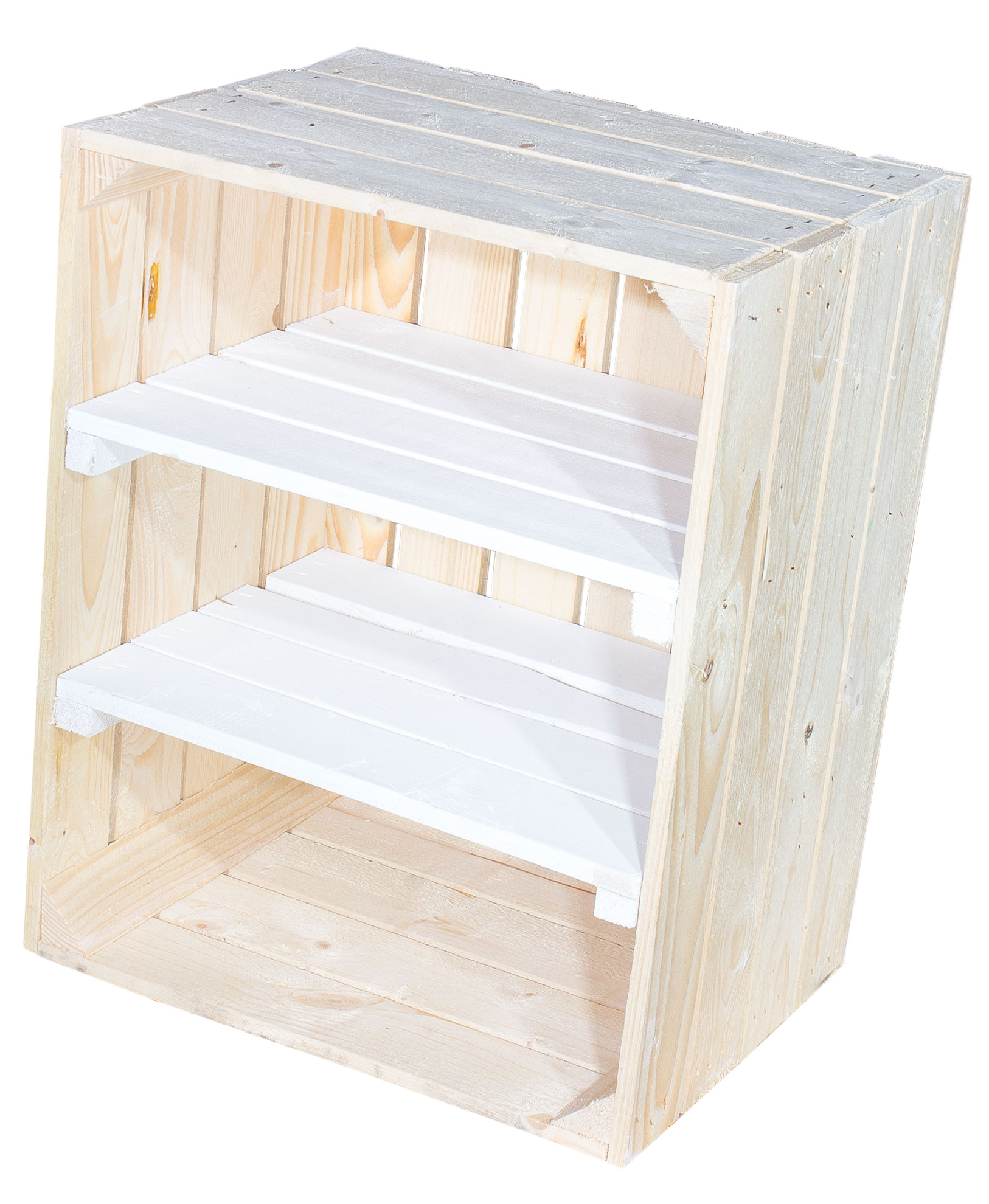 Das besondere an dieser Kiste, sind die 2 Mittelbretter in weißer optik. Sie eignet sich für jedes Wandregal, doch auch auf dem Boden macht sie eine gute Figur.