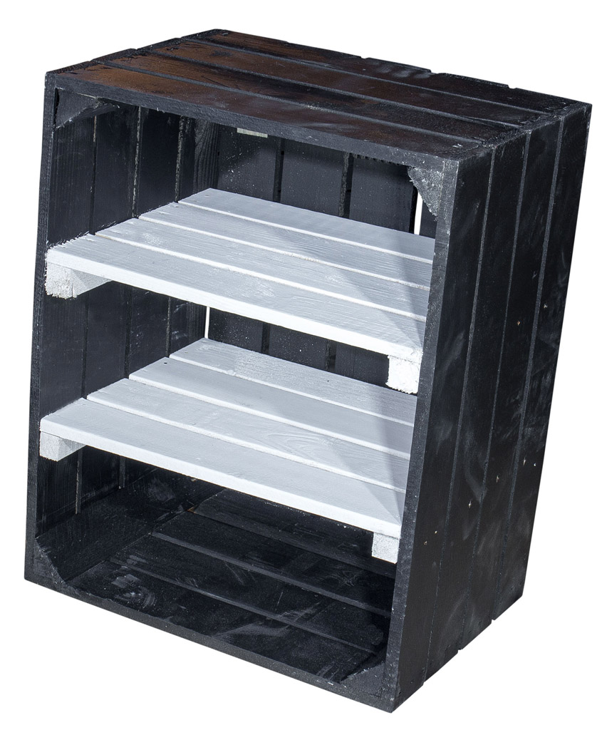 Schwarze Holzkiste mit 2 weißen Mittelbrettern -quer- 50x40x30cm