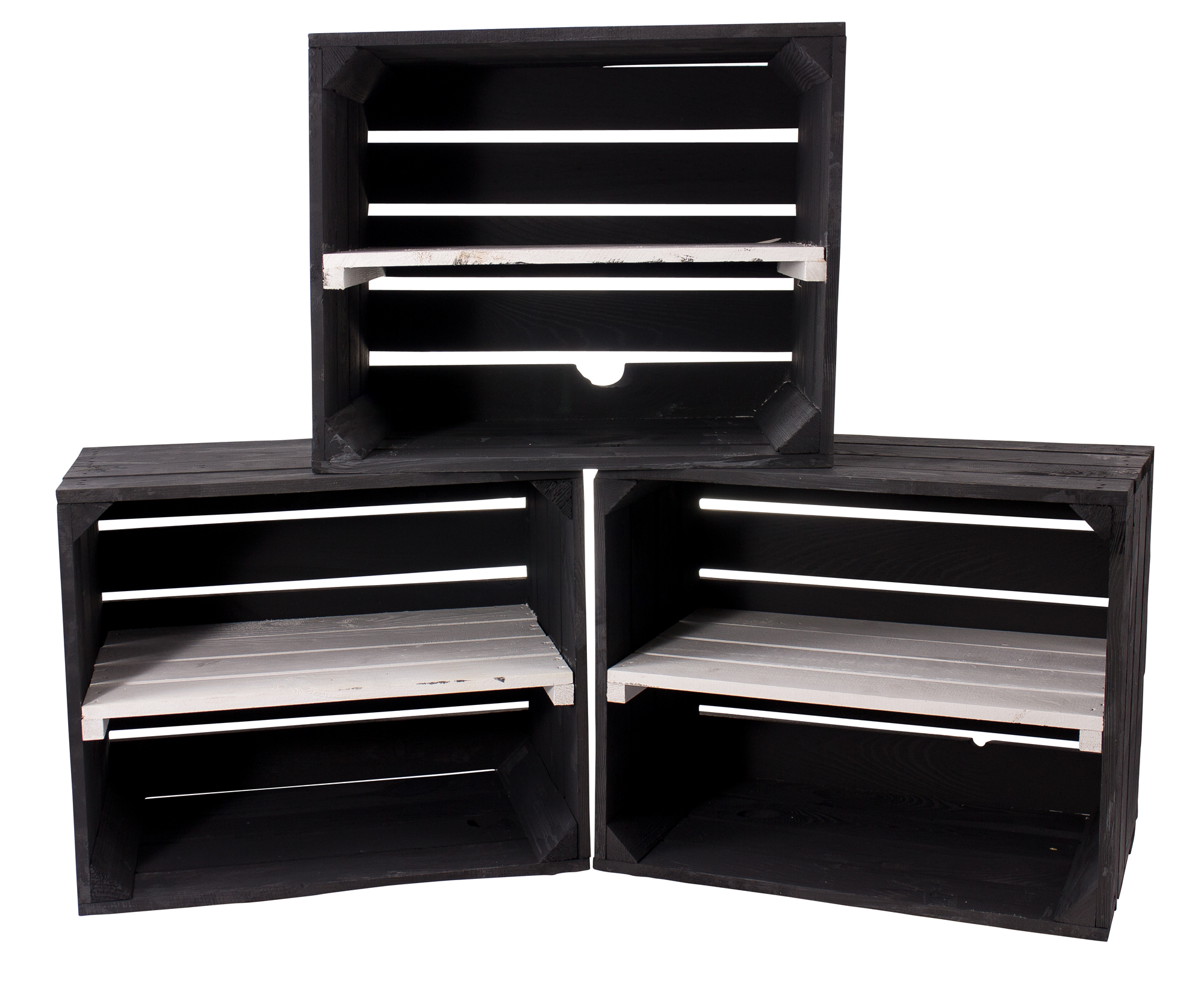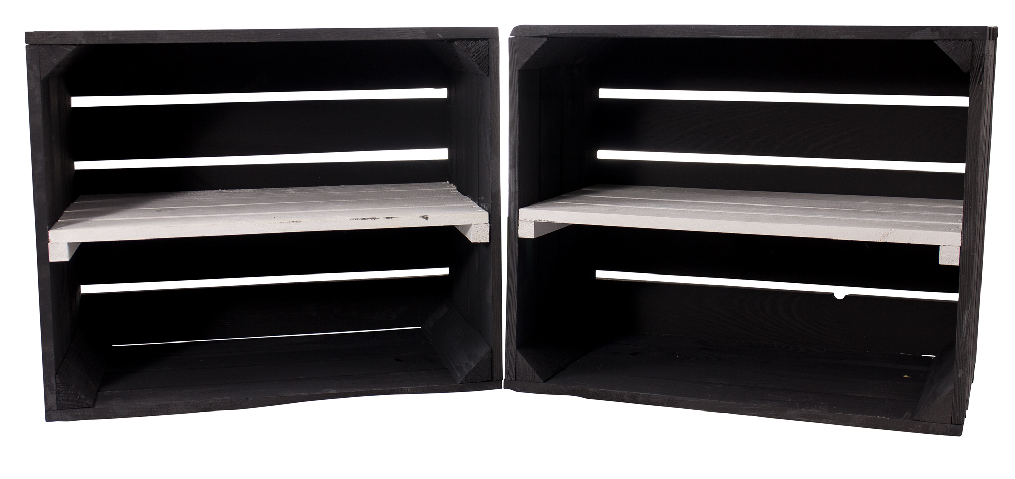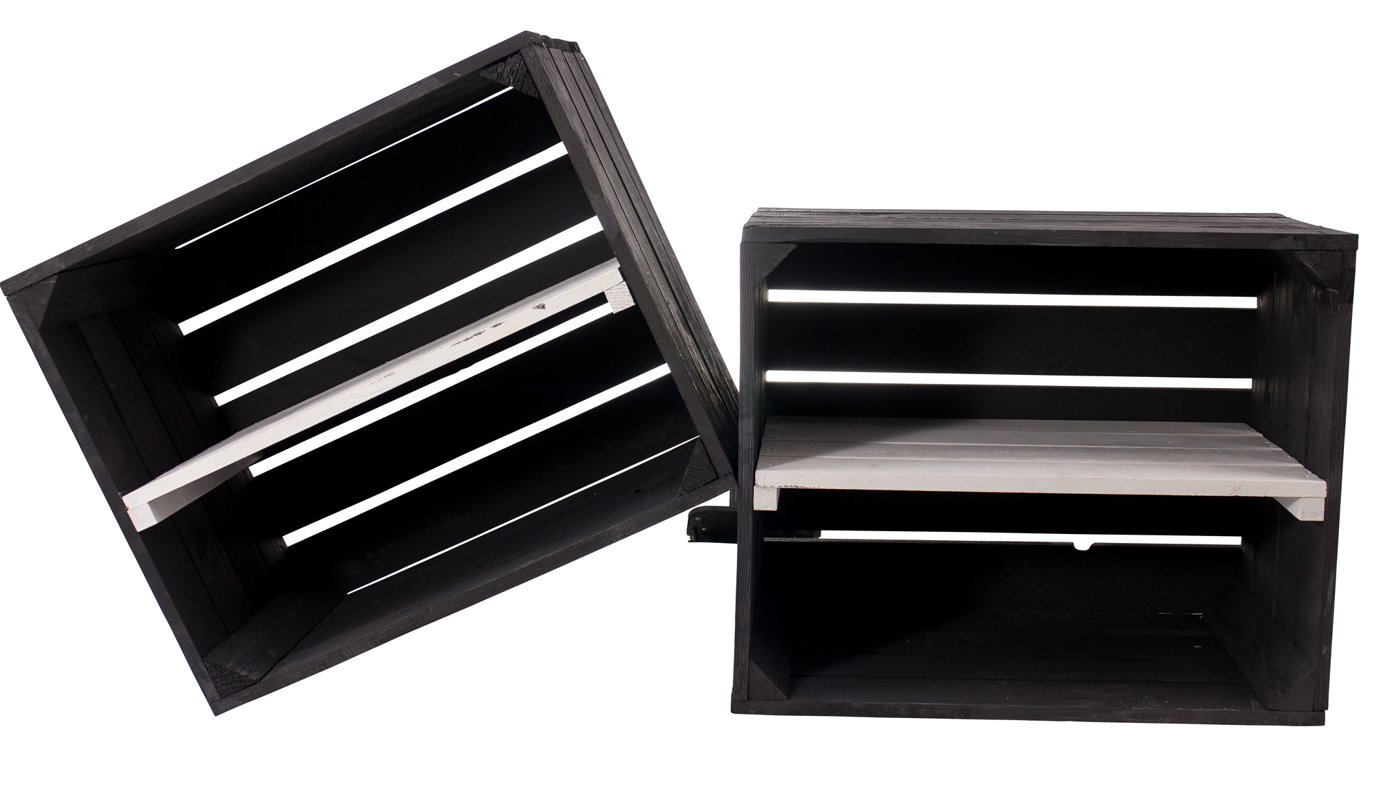 Schwarze Holzkiste mit weißem Mittelbrett -längs- 50x40x30cm