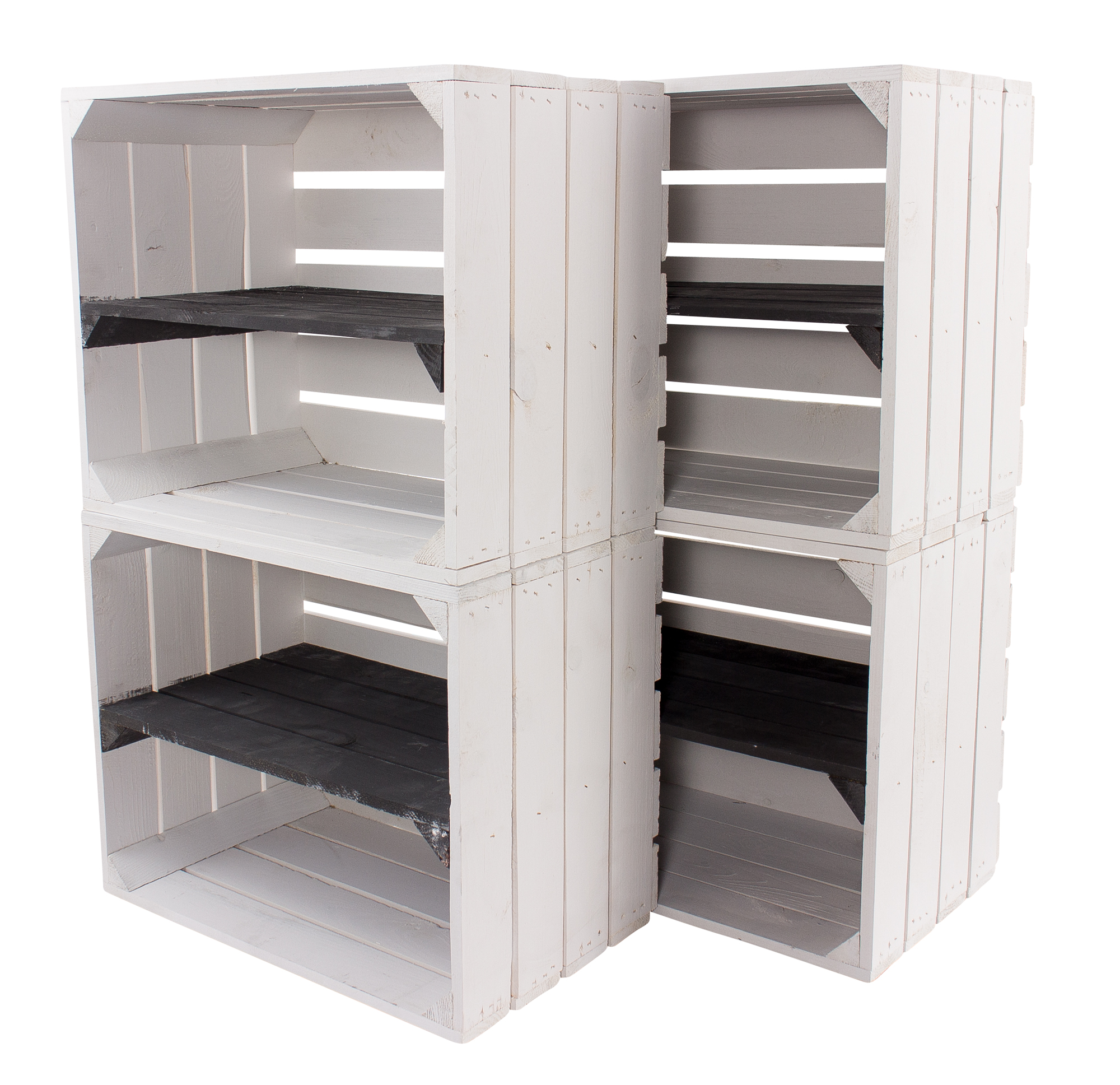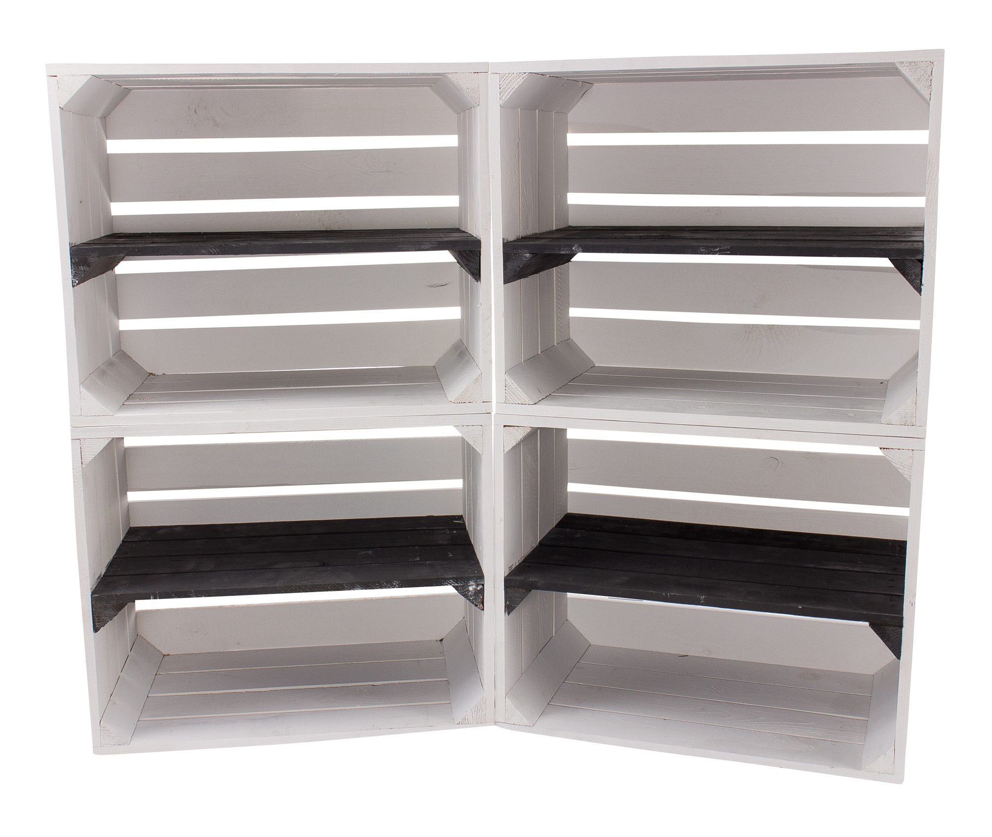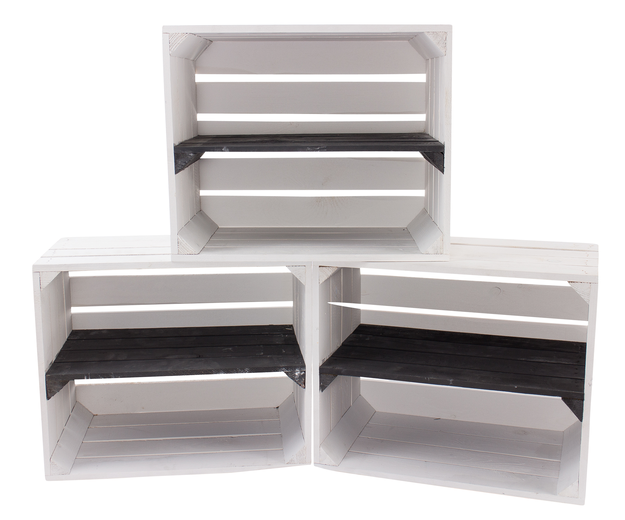 3x Weiße Holzkiste mit schwarzem Mittelbrett -längst- 50x40x30cm
