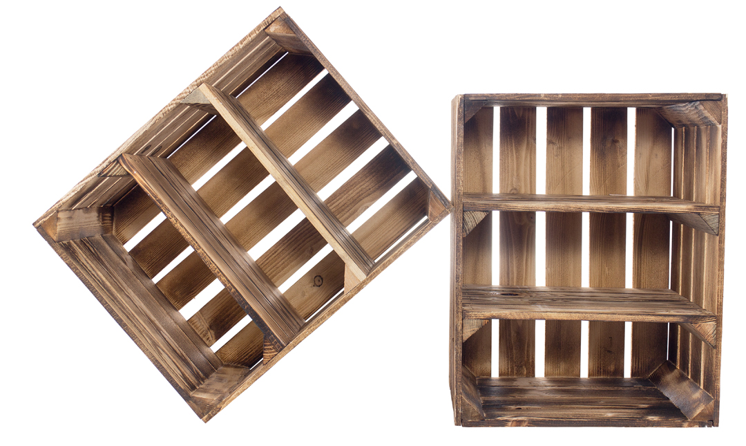 Unsere handgemachten Holzkisten und Obstkisten verleihen deinem Zuhause einen authentischen Stil! Nutzen Sie die Kisten als Regal, als Tisch oder als frei kombinierbares Regalsystem.
