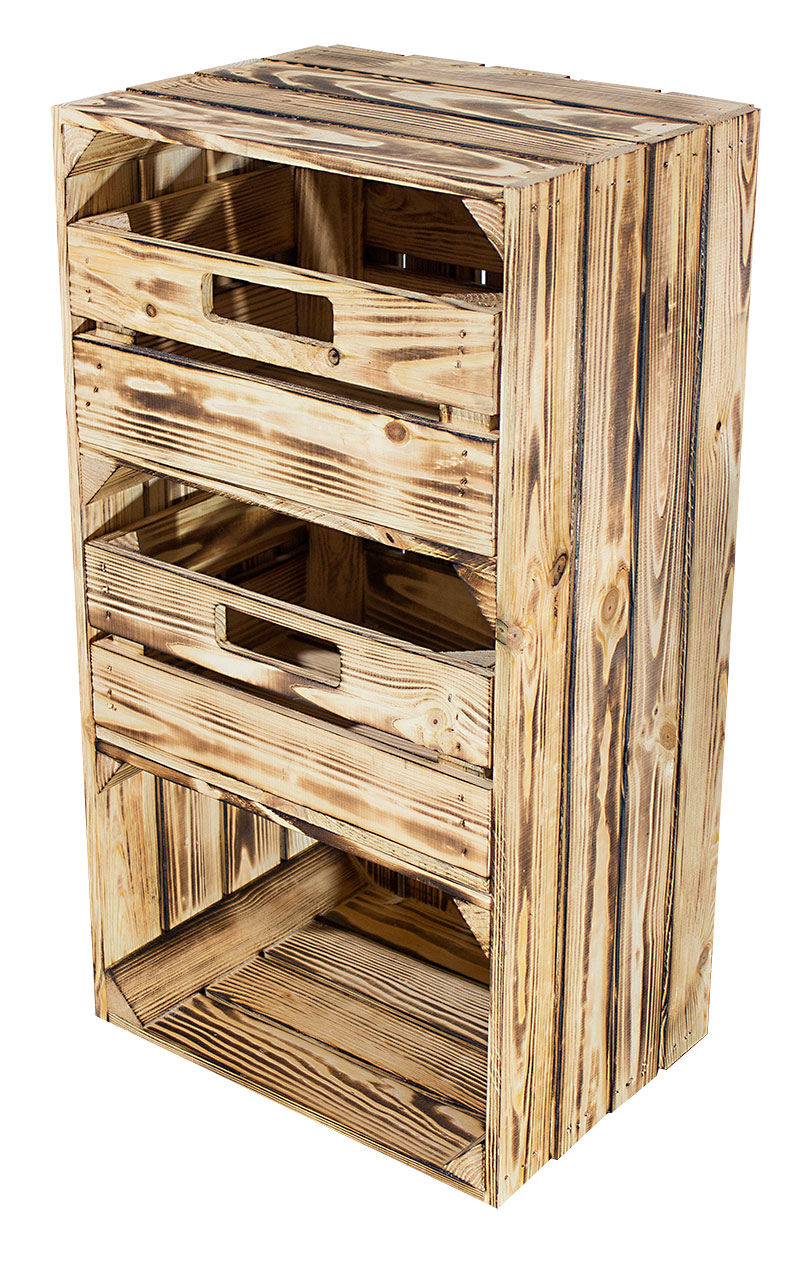 Unsere handgemachten Holzkisten und Obstkisten verleihen deinem Zuhause einen authentischen Stil! Nutzen Sie die Kisten als Regal, als Tisch oder als frei kombinierbares Regalsystem.