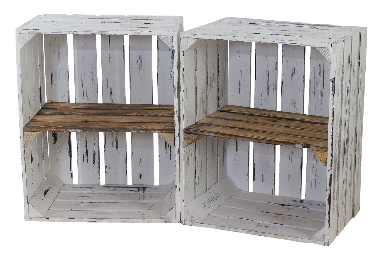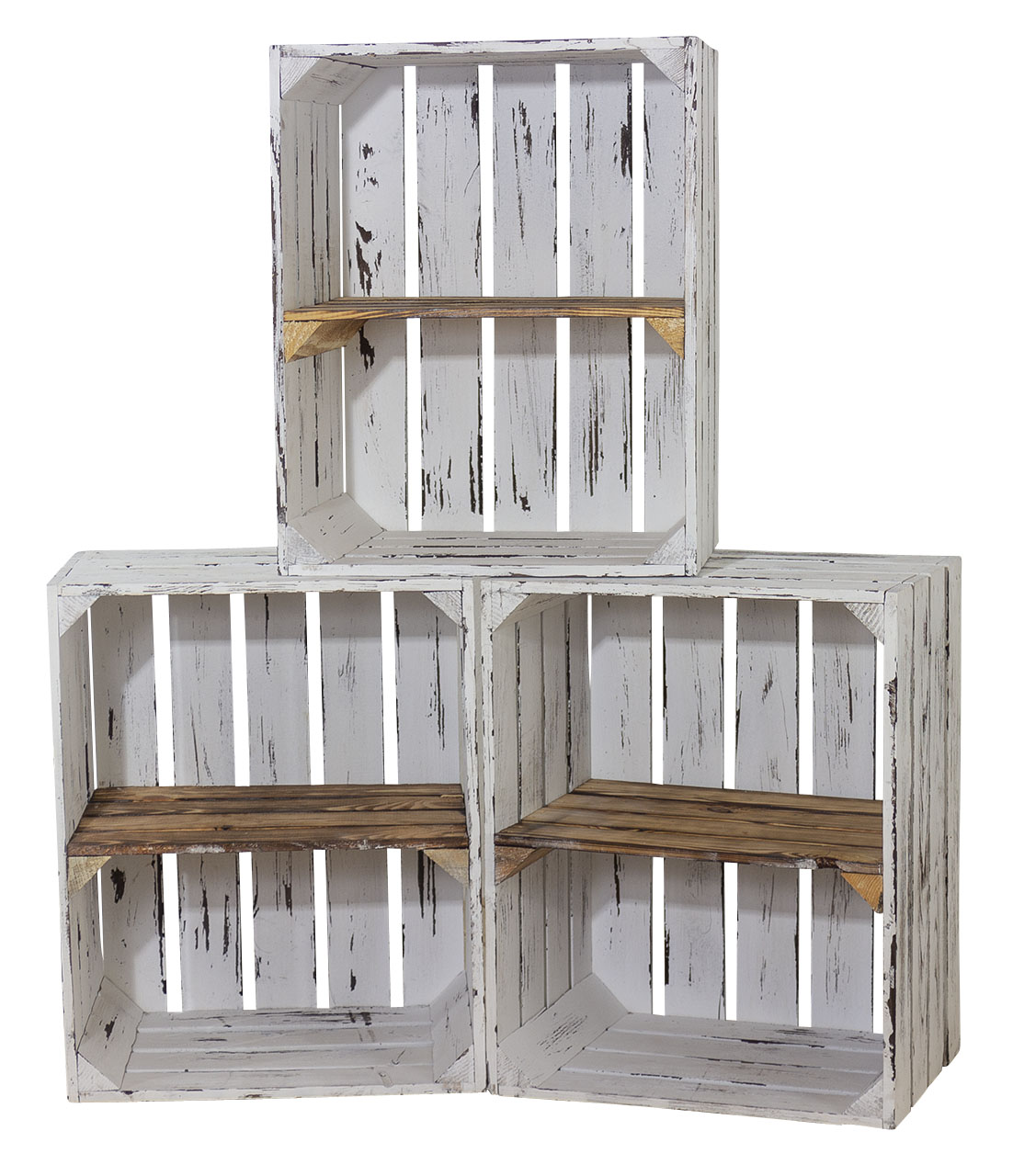 Neue Holzkisten: in shabby weiß & geflammten Mittelbrett