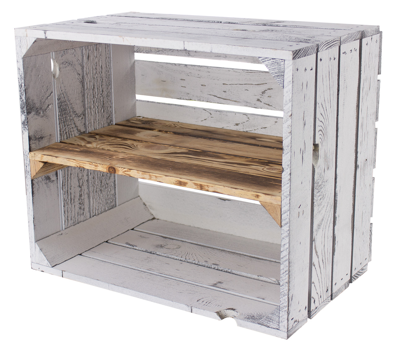 Neue Holzkisten: in shabby weiß & geflammt
