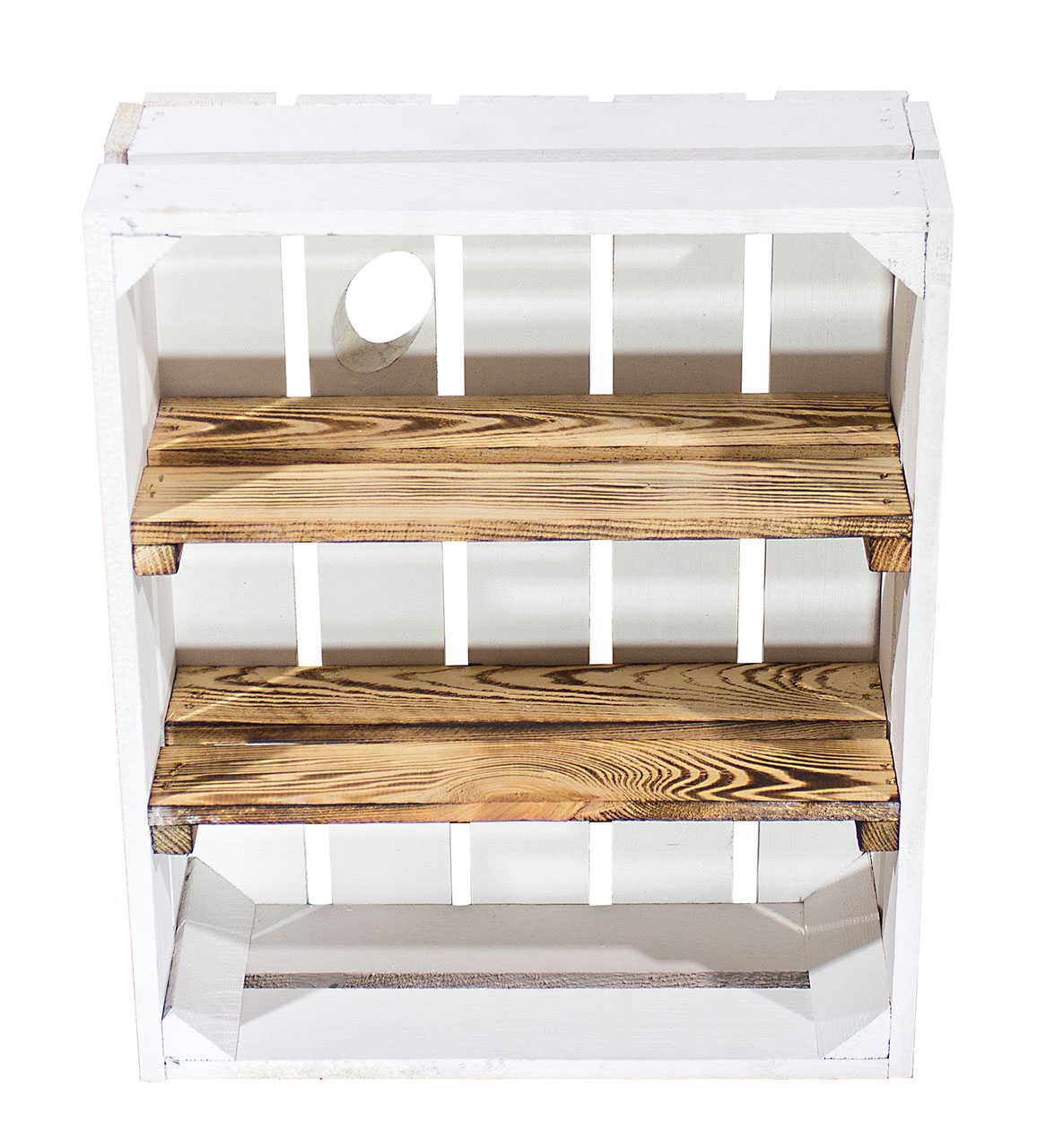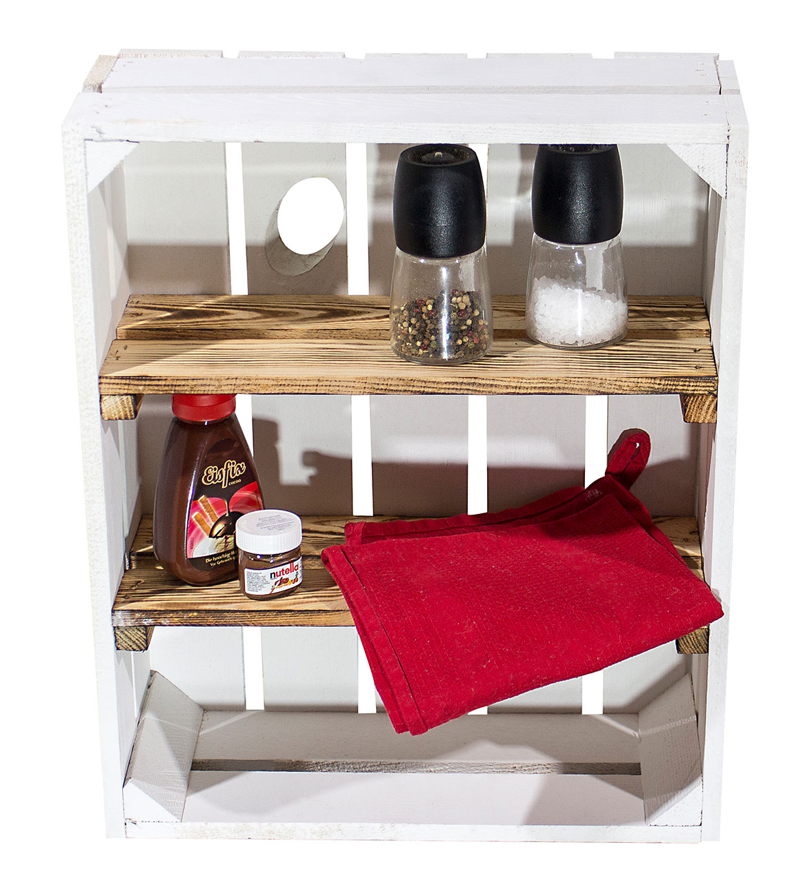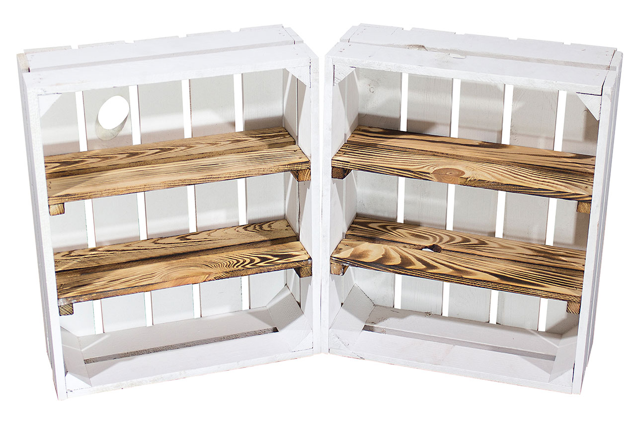 Neue Holzkisten: in weiß & geflammten Mittelbretter