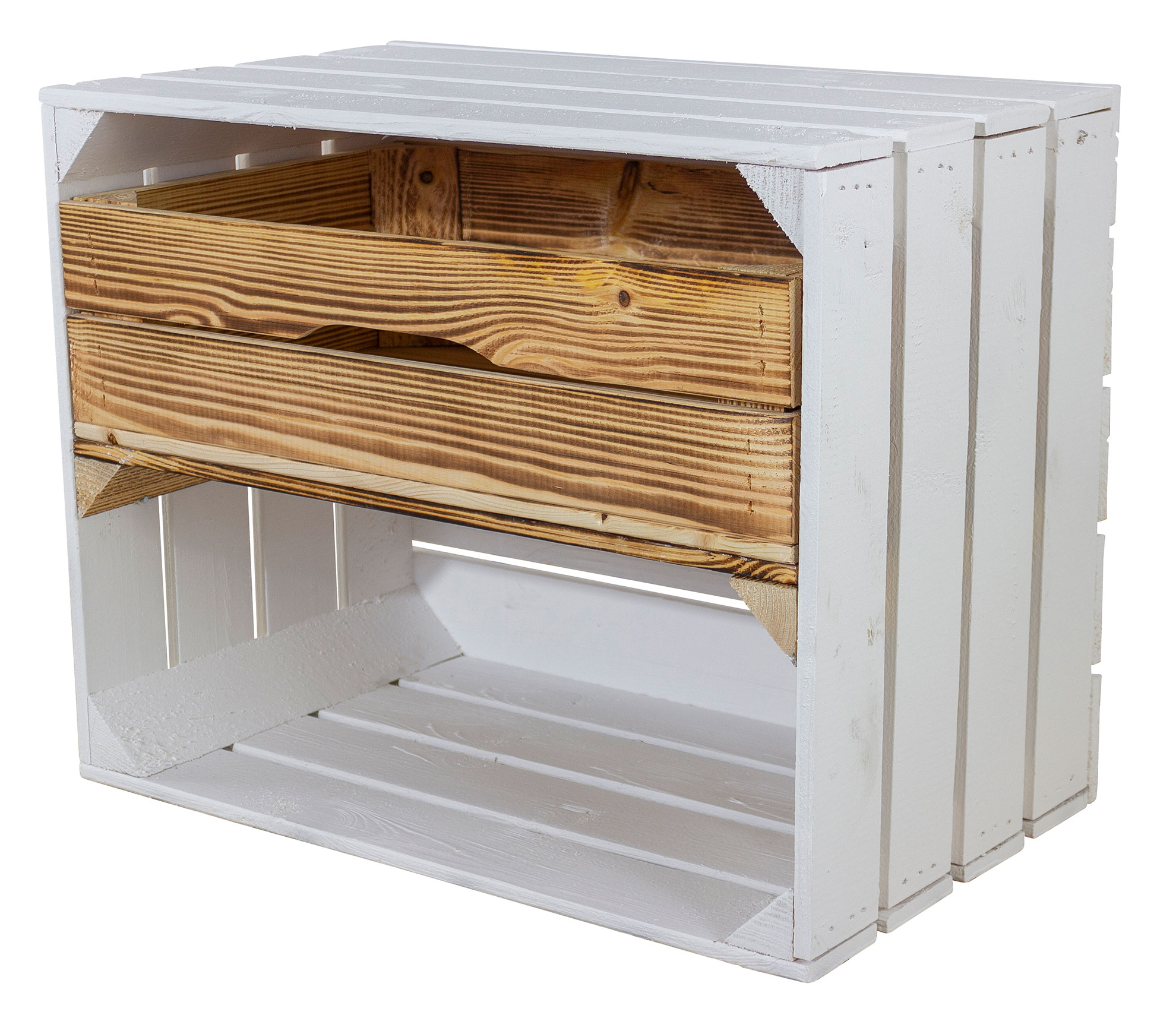 Unsere handgemachten Holzkisten und Obstkisten verleihen deinem Zuhause einen authentischen Stil! Nutzen Sie die Kisten als Regal, als Tisch oder als frei kombinierbares Regalsystem.