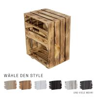 Neue Holzkiste hochkant | mit Schublade | 40x30x50 cm | Obstkiste als Nachtschrank mit Ablagefläche
