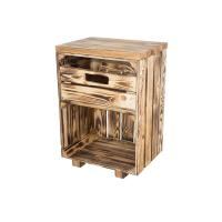 Geflammter Nachttisch mit Schublade und einem geflammten Bohlenbrett auf Holzfüßen, 40x57x30,5